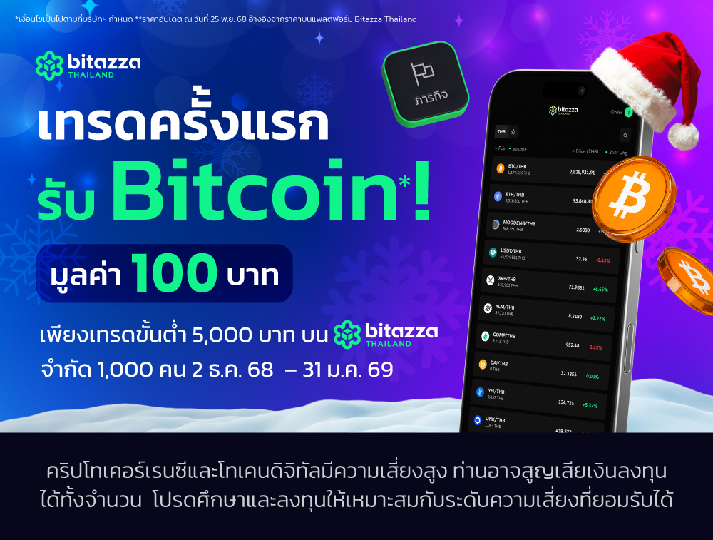 เทรดครั้งแรก รับ Bitcoin มูลค่า 100 บาท*