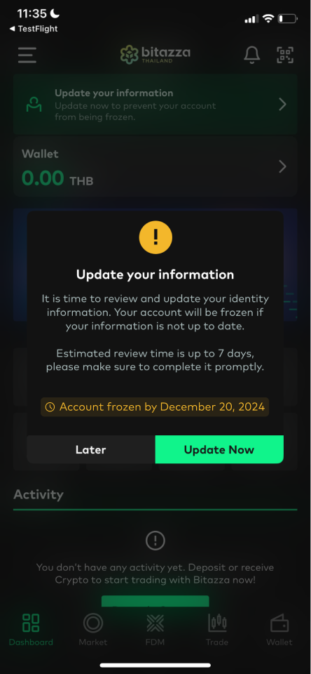 Bitazza Co., Ltd. has implemented a periodic customer review system to ensure that the information in the system is accurate and up-to-date. When a customer’s account reaches its scheduled review period, the company will request the customer’s cooperation to update or submit additional documents within the specified time after receiving an email and notification from the company.
