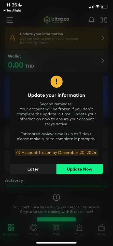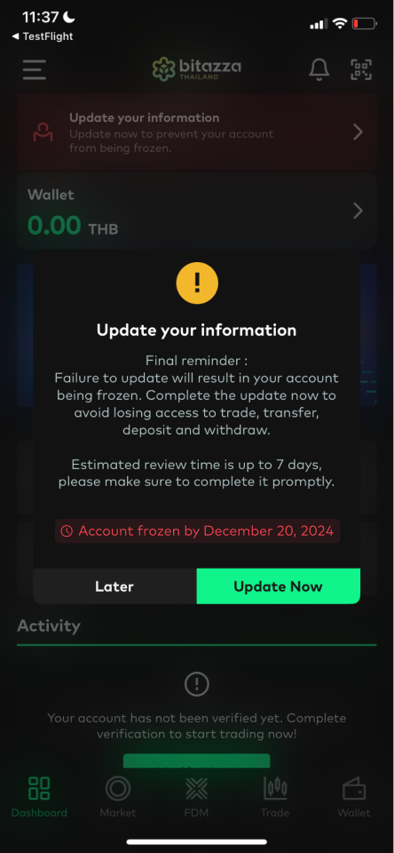 If a customer does not comply with the request within the specified time, their account will be temporarily suspended, and they will not be able to conduct trades or withdraw THB or digital assets. However, rest assured, all assets will remain safe.