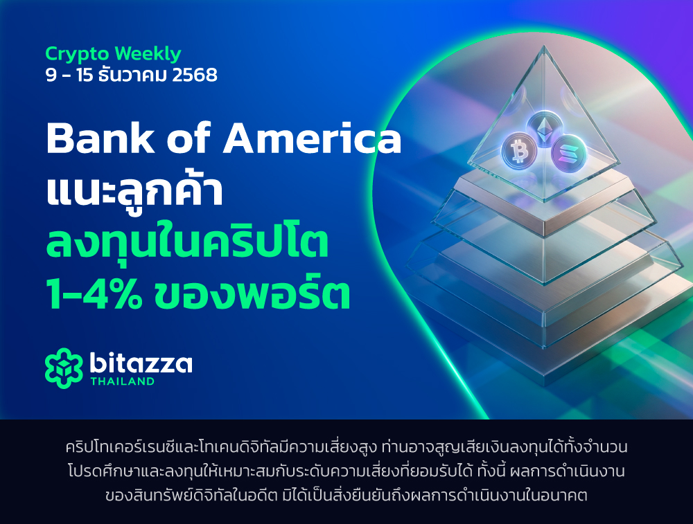 Bank of America แนะลูกค้าลงทุนในคริปโต 1-4% ของพอร์ต